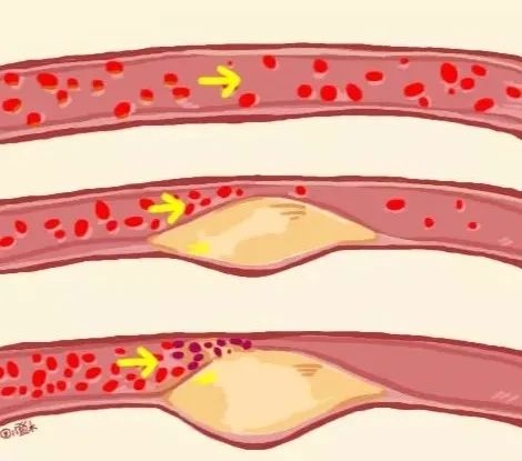 更可怕的是,这些斑块并不是静止不动的,它们会凸入动脉空隙,狭窄的路承受不住这么多“客流量”,难免出现磕磕碰碰的破损。