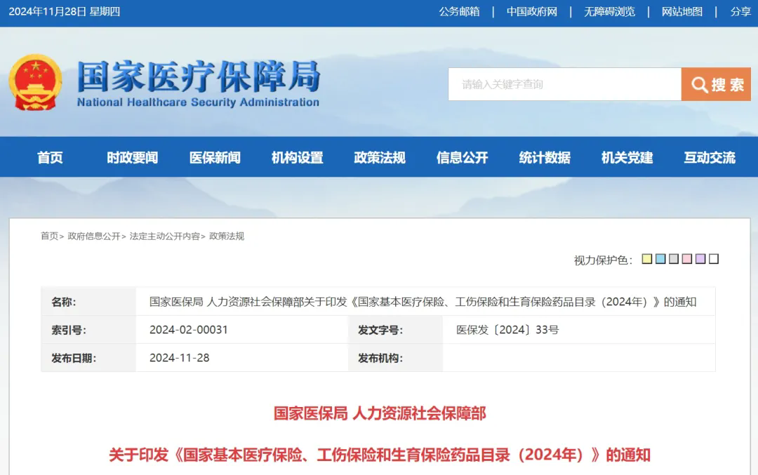 2024年11月28日,国家医疗保障局、人力资源社会保障部印发了《国家基本医疗保险、工伤保险和生育保险药品目录(2024年版)》,新增13款罕见病治疗药品,标志着我国罕见病医疗保障水平再上新台阶。