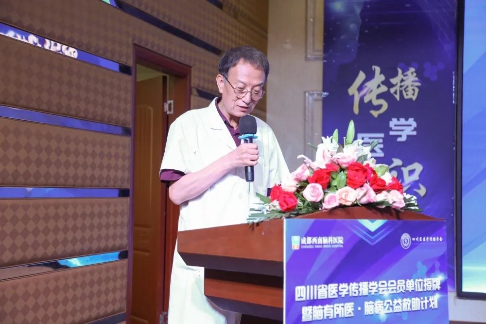随后,四川省医学传播学会党支部万志刚书记致辞,正式邀请我院加入学会,成为学会的会员单位,共同传播脑病的医学知识,提高大众的脑病防治意识,帮助脑病患者进行正规的治疗,重新回归正常的生活。