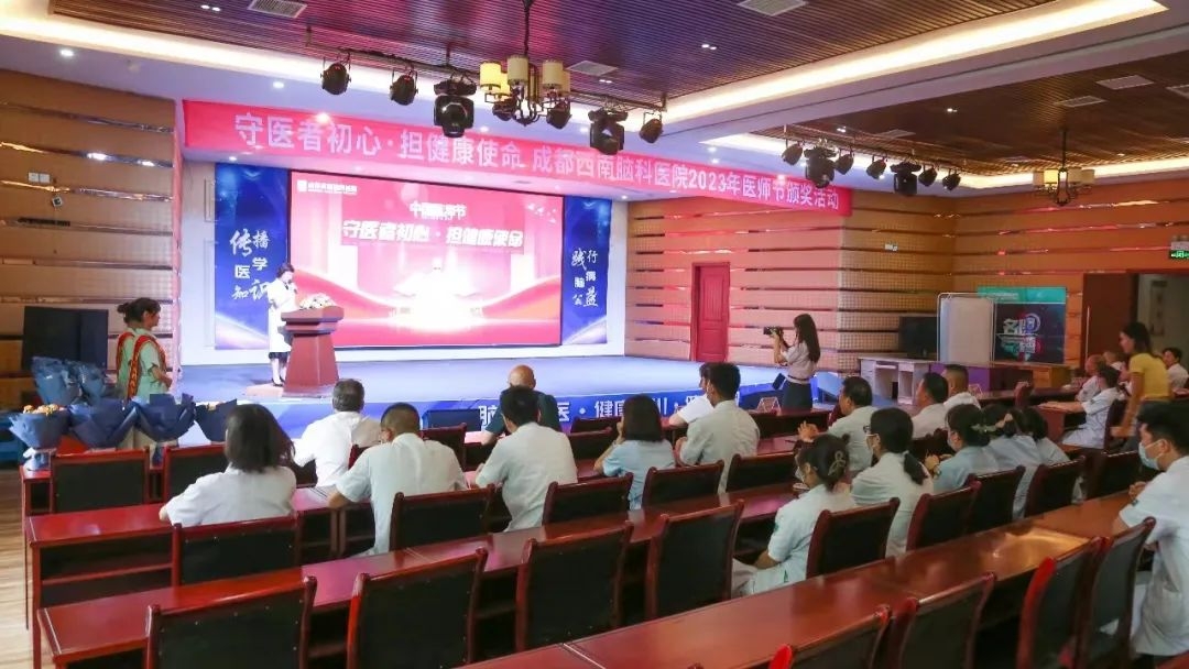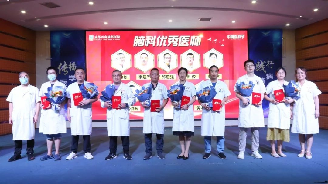医生职业融友爱、责任和道义于一身,虽然沉重,却深感光荣而又无怨无悔!铮铮的誓言是一种坚定的信念,落实到临床工作,涌现出了大批脑科好医生。在接下来的颁奖仪式里,我院邢雯梅院长和党支部王桂芝主任、医务科宋光安主任、院办袁宾主任一起,为我们优秀的医务工作者颁发了荣誉证书。
