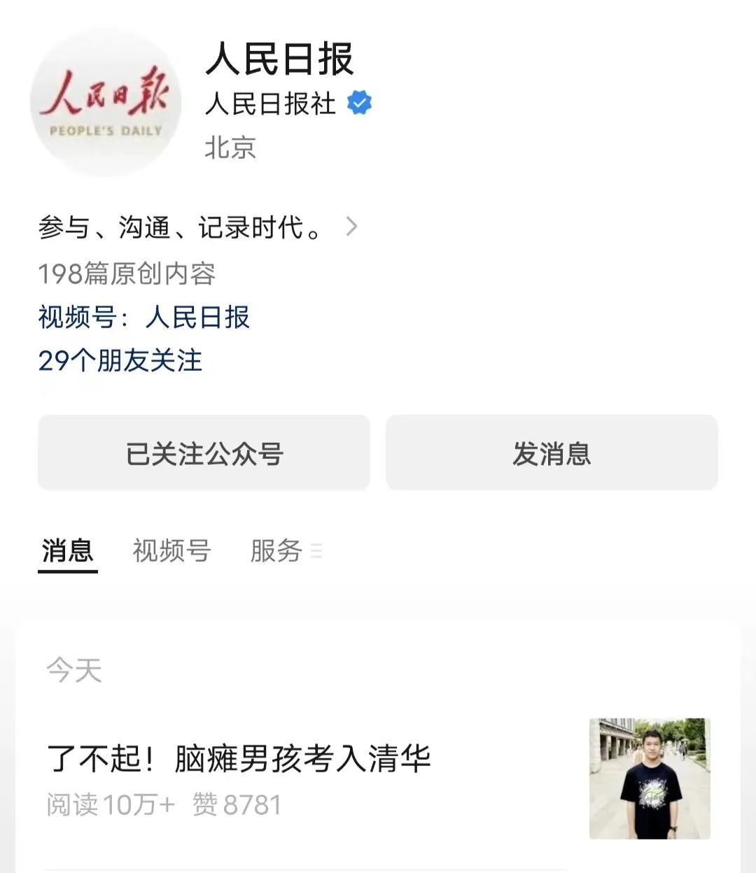 考上清华对他而言有点遥不可及