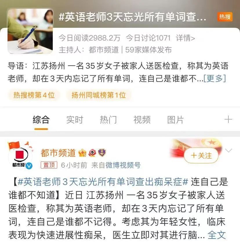 35岁的英语老师,3天内忘光所有单词,连自己是谁都不知道,被查出了痴呆症。