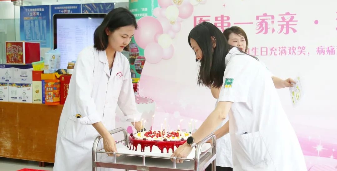 寿星们一起吹蜡烛许下了愿望,也希望用我们的爱给予患者对抗疾病的信心和勇气,用先进的技术让他们减轻痛苦。