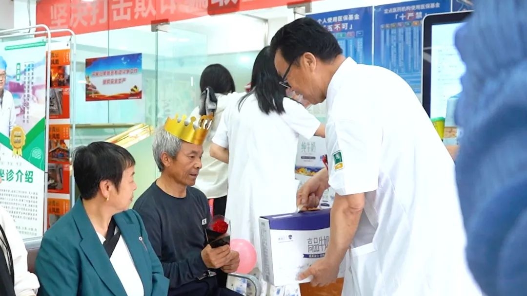 随后,胥院长亲自为每位寿星送上了一箱牛奶和一束鲜花。寿星们接过礼物,脸上露出了感激的笑容。