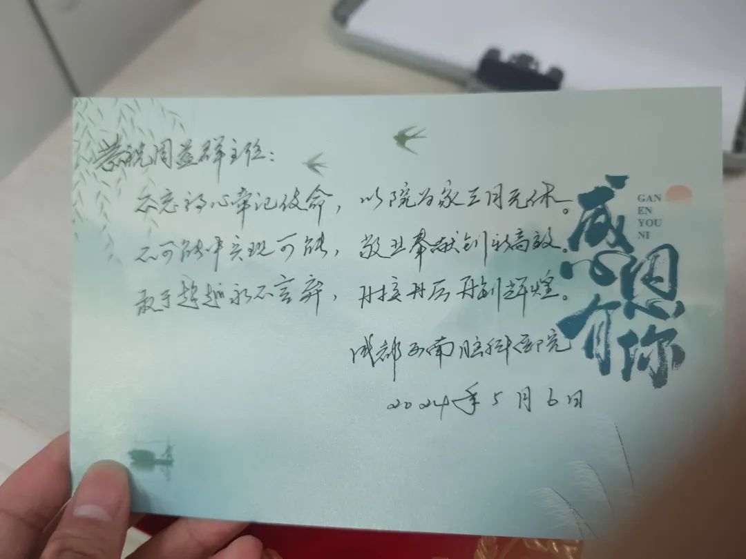 为了感谢周益群主任对医院做出的特殊贡献,医院对周益群主任进行了表彰,“特别敬业奖”实至名归。