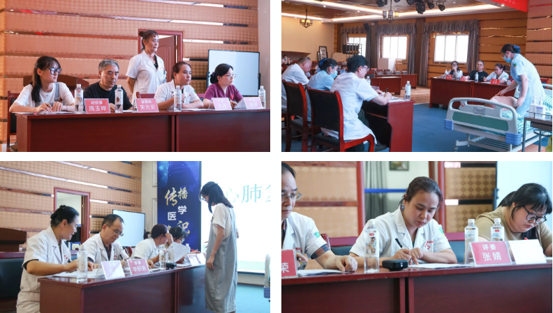 他们需要在规定时间内完成心肺复苏的完整流程,由党支部书记兼护理部主任王桂芝,一病区护士长刘清华、三病区护士长杨学玉、手术室护士长张婧4位评委进行综合评分,医务科主任宋光安监督,医务科干事周玉婷统分,计时员陈欣蕾计时。