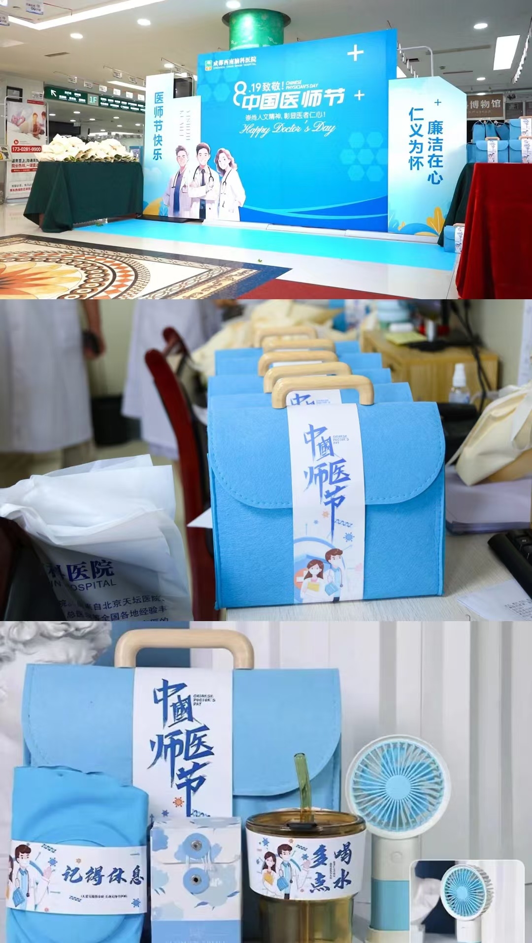 特别的日子当然需要点仪式感,我们早早布置好大厅,为医师准备了实用的医师节礼物。