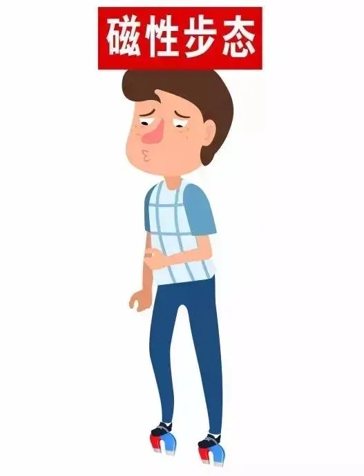 这种步态就是脚抬不起步,总是搓着地走,类似于脚上绑了磁铁在磁场上走一样无法轻松抬起脚走路的步态。这种步态的人常常会失去平衡很容易摔倒。