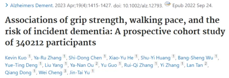“手部力量衰退”可能有助于识别老年痴呆风险;“步态功能衰退”可能是早期血管性认知障碍的生物标志物。