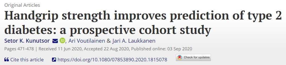 2020年发表在《医学年鉴》上的一项研究发现,握力值增加可以降低患2型糖尿病的风险。简单的测试如握力,可以作为一种快速、低成本的筛查工具,帮助医护人员识别出有2型糖尿病风险的患者。