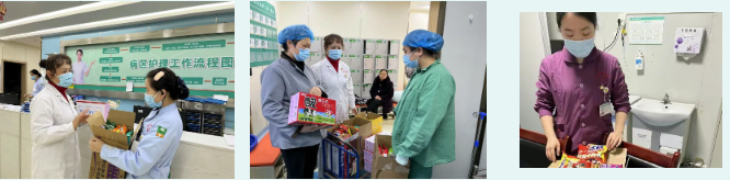 在这场没有硝烟的“战争”中,有一个人始终关注着每一位护士的辛勤付出。她,就是党支部书记兼护理部主任王桂芝。深知护士们的辛劳与不易,王主任特地筹备了一批方便面、牛奶等即食物资,亲自送到各科室护士长的手中,分发给忙碌的护士们。