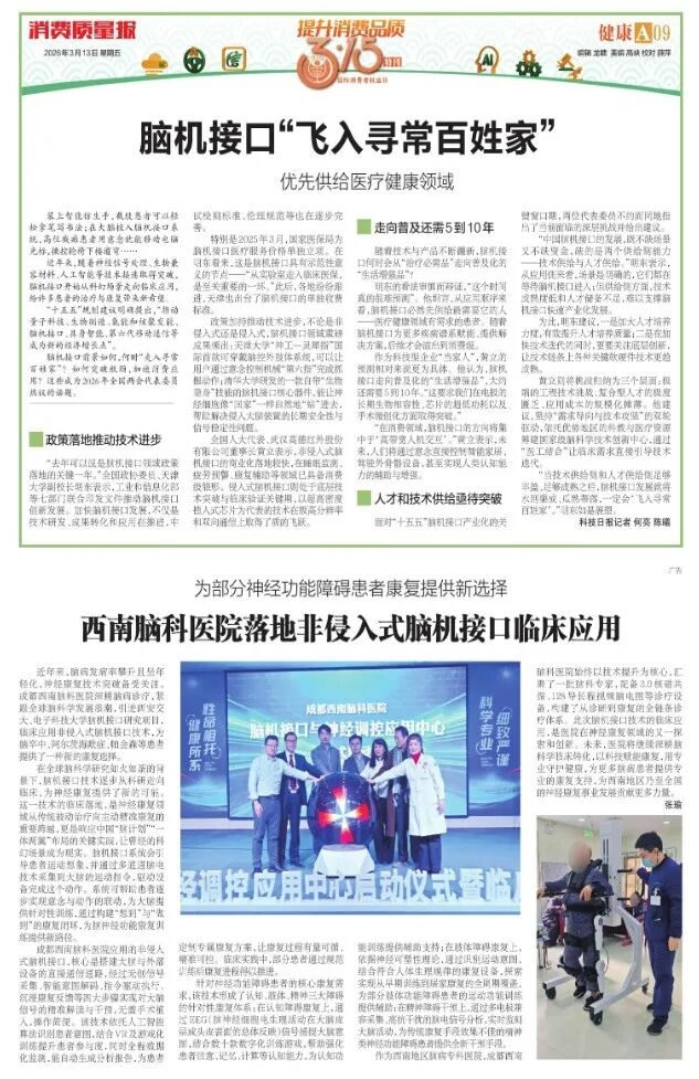 每年315,都是对诚信与品质的检验。今年,我们以硬核技术交出答卷,脑机接口技术正式投入临床应用,并荣登《消费质量报》!权威认可,既是肯定,更是责任。
