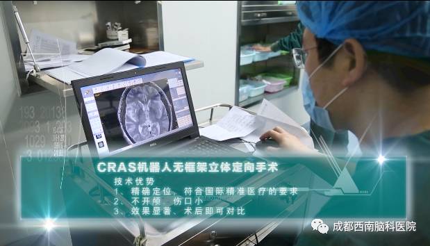 脑立体定向仪技术是在高技术研究发展计划(863计划)的大力支持下,由北京航天航空机器人研究所、海军总医院、清华大学计算机科学与技术系联合研制,同时采用了美国耶鲁大学机器人手臂技术,具有我国自主知识产权的脑立体定向仪技术,用于治疗典型、震颤等脑内神经损伤的脑科疾病,但由于受到医院资质、治疗条件、医疗硬件、临床医生经验等诸多因素的限制,目前该技术仅在国内极少数重点院所授权科研使用,作为拥有该863计划项目科研课题的成都西南脑科医院,被授权成为该项技术临床转化医院。
