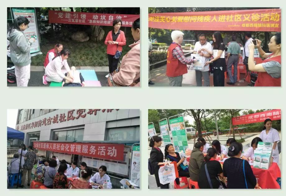 成都西南脑科医院携手成都市街道、社区联合开展健康义诊进社区活动,为社区居民送上浓浓的健康关怀。健康带进社区,义诊送到家门,此举可使社区居民学习到很多正确防病治病知识,并接受到专业的医疗服务。因此,此举受到成都市社区居民的普遍欢迎。