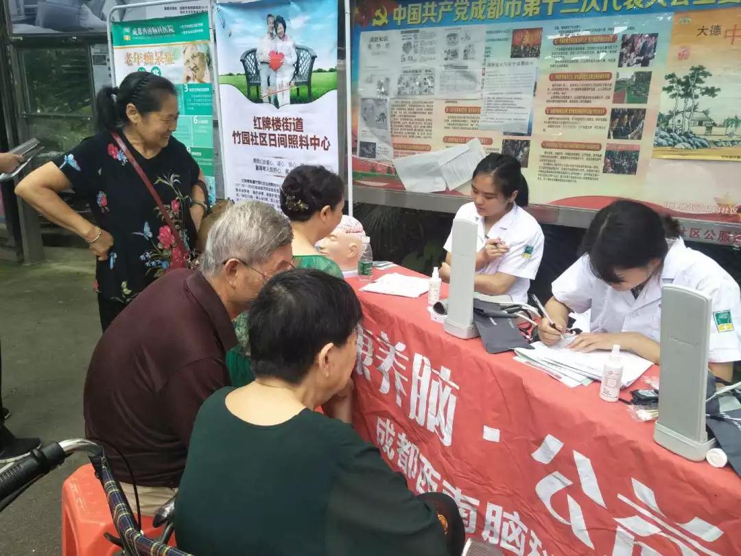 在社区义诊活动现场,成都西南脑科医院的医护人员认真为居住在此的社区居民进行了健康检查和义诊,一一耐心询问并了解了他们的健康状况。西南脑科医护人员给社区居民概述了老年痴呆情况,老年痴呆又称“阿尔茨海默病”。目前中国有老年痴呆患者600万人之多,每年平均有30万新发病例。