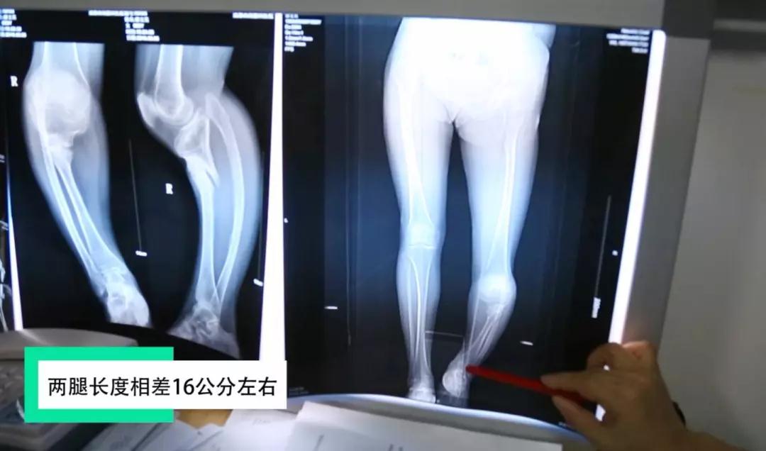 据了解,该患者姓廖,52岁,出生40天发病患右小腿骨髓炎,打完预防针后第二天脚肿了,造成右下肢扭曲、短缩畸形,伴胫骨假关节骨不连。因为右下肢短缩高达16公分,所以,不仅走路很费劲,而且还一瘸一拐的,引来周围人不少异样的眼光。