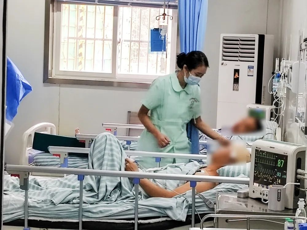 平日里,李先生家人工作繁忙,只能每天送来饭菜便匆匆离开,全靠西南脑科医护人员照顾,帮忙喂饭、擦身等。
