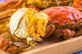 螃蟹为含组氨酸较多的食物,蒸熟后超过4小时可能造成中毒,因此吃蟹较好当场蒸好、当场吃完。