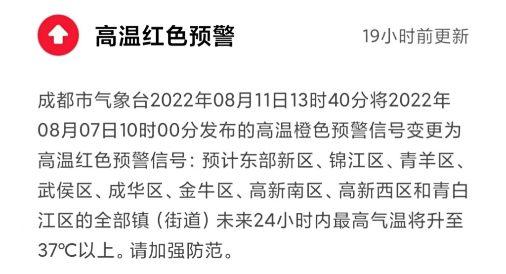 成都4地首发红色高温预警!预计还要热10天!警惕持续高温引发脑中风!