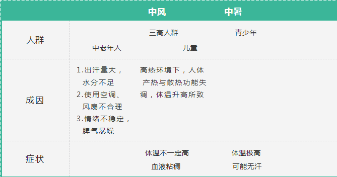 另外,夏季昼长夜短,容易睡眠状态不好、血压增高、血液粘稠、情绪较易激动等,引发脑中风。统计数据显示,当在35℃以上的高温天气时,脑中风的发病率、死亡率明显上升,因此每年的七八月份都会有一个中风小高峰。而且,一定要将中风引起的头晕与中暑区别开来。