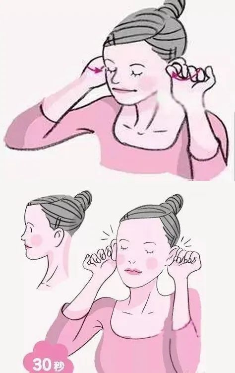 早晨起来按摩下耳朵,也是有助于醒脑的。用双手掌心紧按住两耳孔,将两手的中间三指——食指、中指、无名指,轻击后枕骨十几次。然后,掌心按耳孔、手指按枕骨几秒钟不动,再骤然抬离,过一会儿又如前法按耳、击枕骨,击时如闻鼓声。这样重复多遍,可以清醒头脑、增强记忆,对高血压患者还有舒张血管、降低血压的作用。