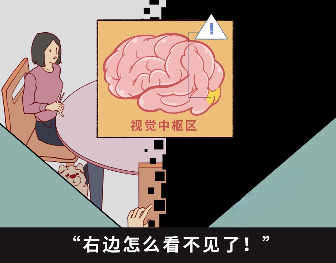 视觉区域受损时,则会眼前发黑甚至半侧视野缺失。