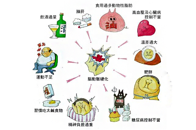吸烟使卒中的危险性增加一倍。研究证实,吸烟可导致脑血管狭窄引起脑卒中。过度饮酒可增加3倍卒中危险性。高盐高脂的饮食习惯可导致高血压和肥胖,并增加患卒中的危险性。
