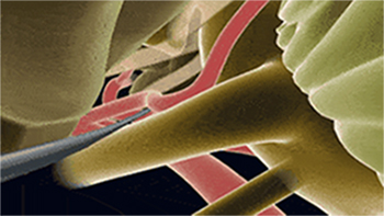 微血管减压手术就是在麻醉后,从耳后切一个4-5cm的小切口,然后在颅骨上面钻一个小孔,这个小孔的大小相当于一元钱硬币大小。通过显微镜在颅内操作,用手术器械将压迫在三叉神经根上的血管分离开,使血管不再压迫神经根。手术不损伤脑组织,不损伤神经,术后不影响病人的日常生活。从根本上解决了三叉神经痛,而且立竿见影。